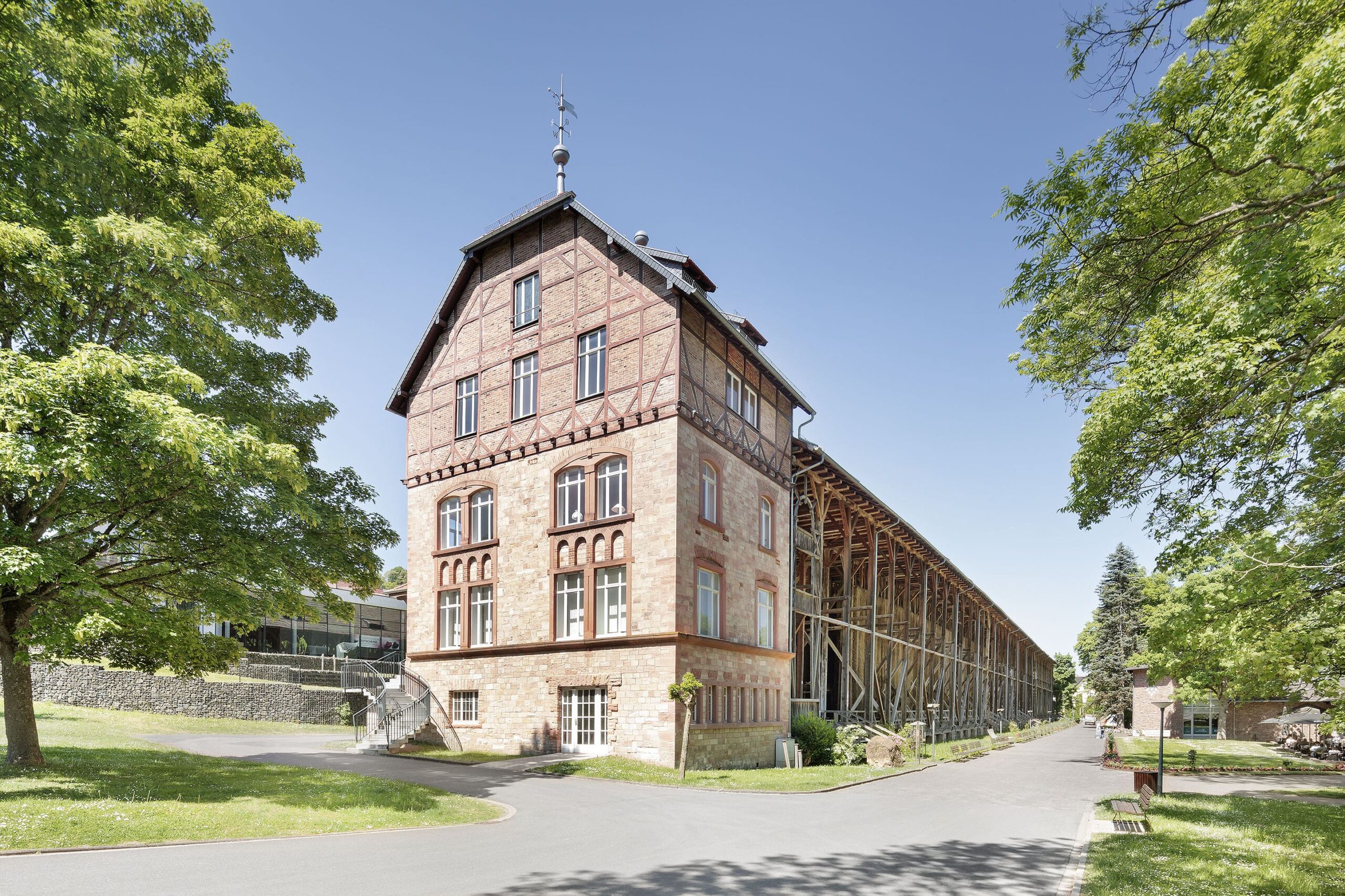 Bad Orb is located just outside the Rhine-Main metropolitan region. Bad Orb shares a particularly long history with Frankfurt. In 1899, Frankfurt noblemen purchased the Bad Orb saltworks. The Bad Orb spa gardens were designed by landscape architect Heinrich Siesmayer, just like Frankfurt’s famous Palmengarten. The connection to Frankfurt is flourishing once again in Bad Orb: Since summer 2023, the destination brand ALEA PARK has been a strategic partner of Eintracht Frankfurt and promotes Bad Orb as a spa destination at Deutsche Bank Park. At the new school in Bad Orb, the ALEA SCHOOL, a palm-themed auditorium inspired by the Palmengarten and a palm courtyard are also planned at the center of the school campus.